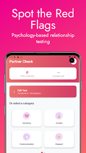 Red Flags: Check partner är en gratis app för Android som hjälper användare att analysera och förstå sina relationer genom interaktiva självutvärderingstester. Med en omfattande bedömning som består av 20 frågor, erbjuder appen specifika tester för olika aspekter av partnerskapet, inklusive kommunikationsmönster, ömsesidig respekt och konfliktlösning. Användare kan också dra nytta av situationbaserade analysverktyg som bedömer partnerskapskompatibilitet.